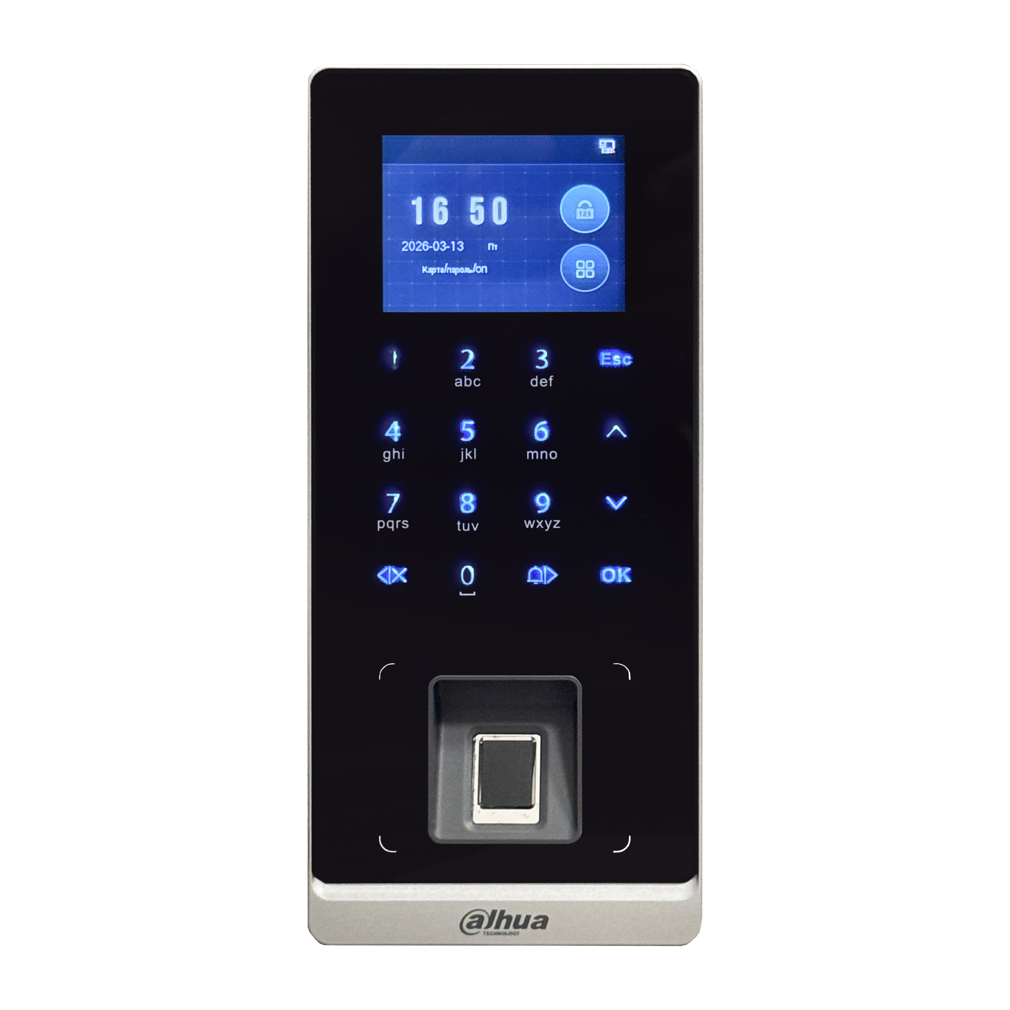 - Терминал доступа автономный с аутентификацией пользователя по отпечатку пальца, карте Mifare, паролю