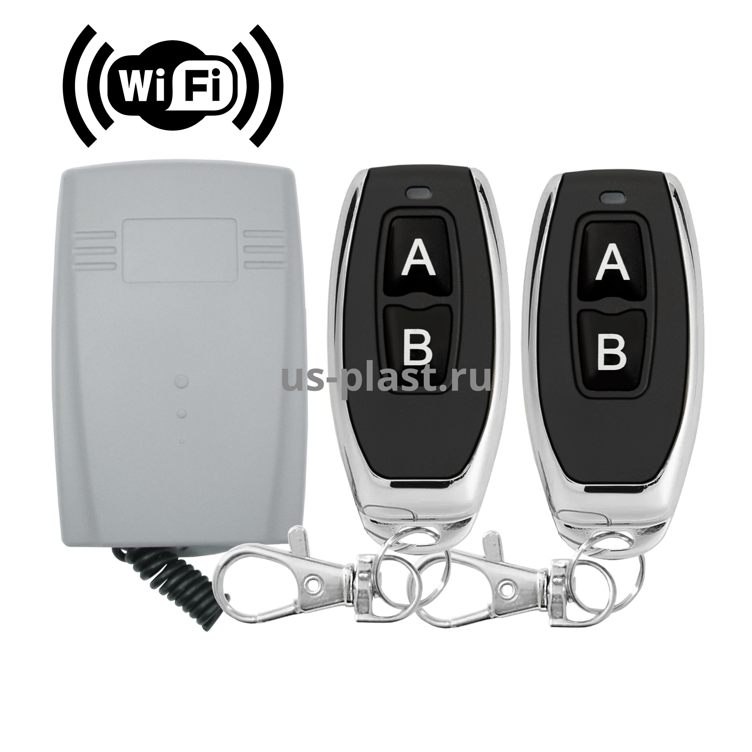 Комплект управления по радиоканалу YET402WFR-RC2 (Wi-Fi) состоит из 2-х канального радиоприемника и двух пультов-передатчиков дистанционного управления.
